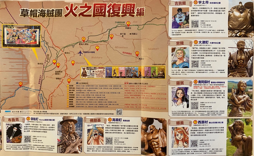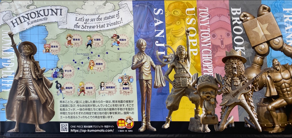 為了幫助熊本大地震後復興,在熊本各個地方都有海賊王角色的雕像。